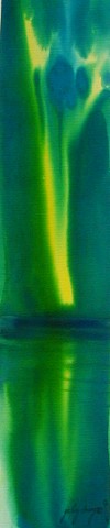 commencer à peindre de grands formats aux couleurs vives, à l'encre, sur papier, fusionnant son apprentissage